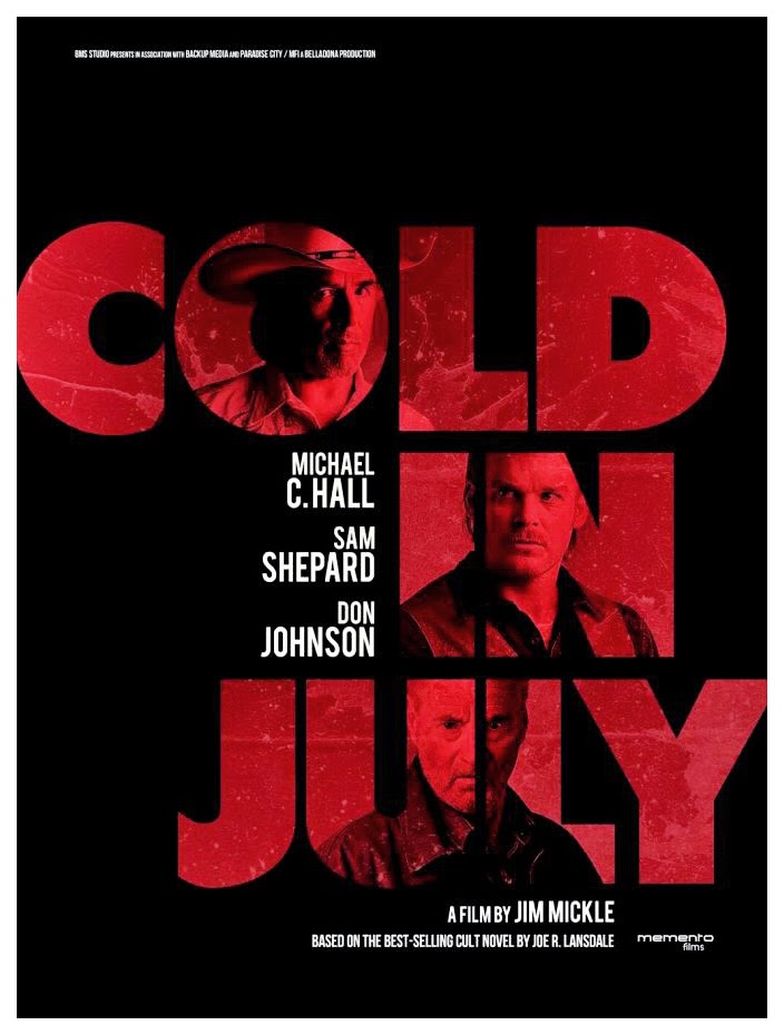 . [5] [6] The film takes place in 1980s Texas and is based on the novel Cold in July by author Joe R Lansdale.Hall plays a man who kills a burglar, whose father (Shepard) subsequently seeks revenge.